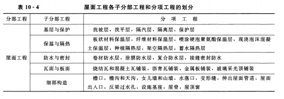参见《屋面工程质量验收规范》(GB 50207—2012)。3-·0-13屋面工程各子分部工程和分项工程的划分,应符合表10-4的要求。